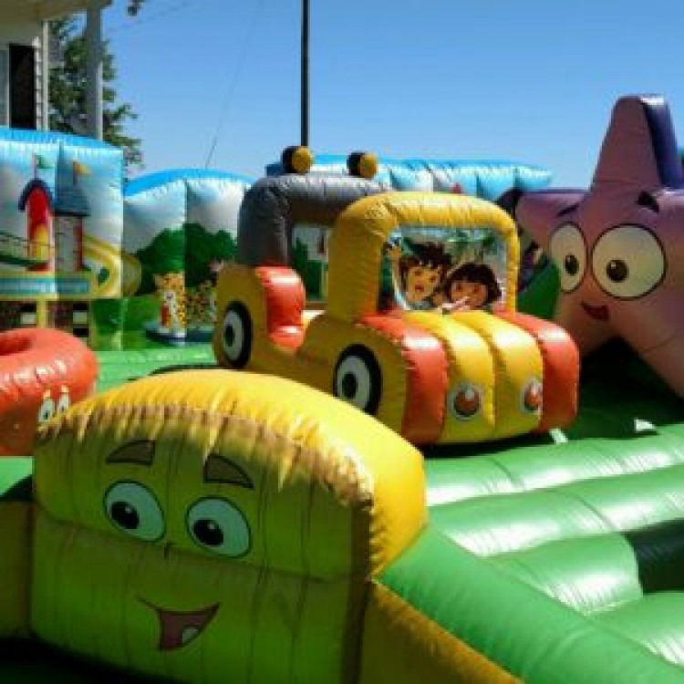The licensed Dora and Diego Learning Adventure is a playground that offers fans of ‘Dora the Explorer’ and ‘Go Diego Go!’ educational playtime. As kids roam around the inflatable they will see the familiar characters from the popular series. This is the ultimate playground with puzzles and games, a slide, multiple pop-up palm trees, a sit in inflatable jeep and more. Hours of fun are guaranteed with this unit. It also has a fully enclosed perimeter so you can easily watch the kids play and know they cannot fall out. Safety is top of the list with this amazing inflatable.