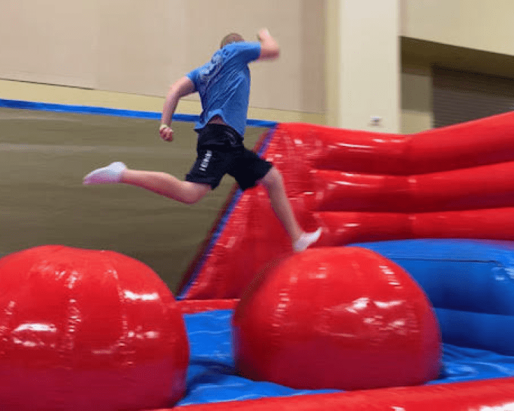 Can you make it across without falling? The Big Baller Game features a series of giant, inflatable red balls set in the center of a cushioned course. Participants climb up the ladder at either end and attempt to hop, skip, and jump their way across the balls—without touching the floor! The balls bounce and move, making each attempt uniquely challenging and hilarious. If you fall, don’t worry—just get back in line and try again!